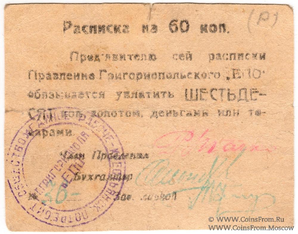 Печать круглая: "Г.ГРИГОРИОПОЛЯ "ЕПО"" (по центру в две строки) / "ЕДИНОЕ РАБОЧЕ-КРЕСТЬЯНСК. ПОТРЕБИТ. ОБЩЕСТВО *" (по кругу).