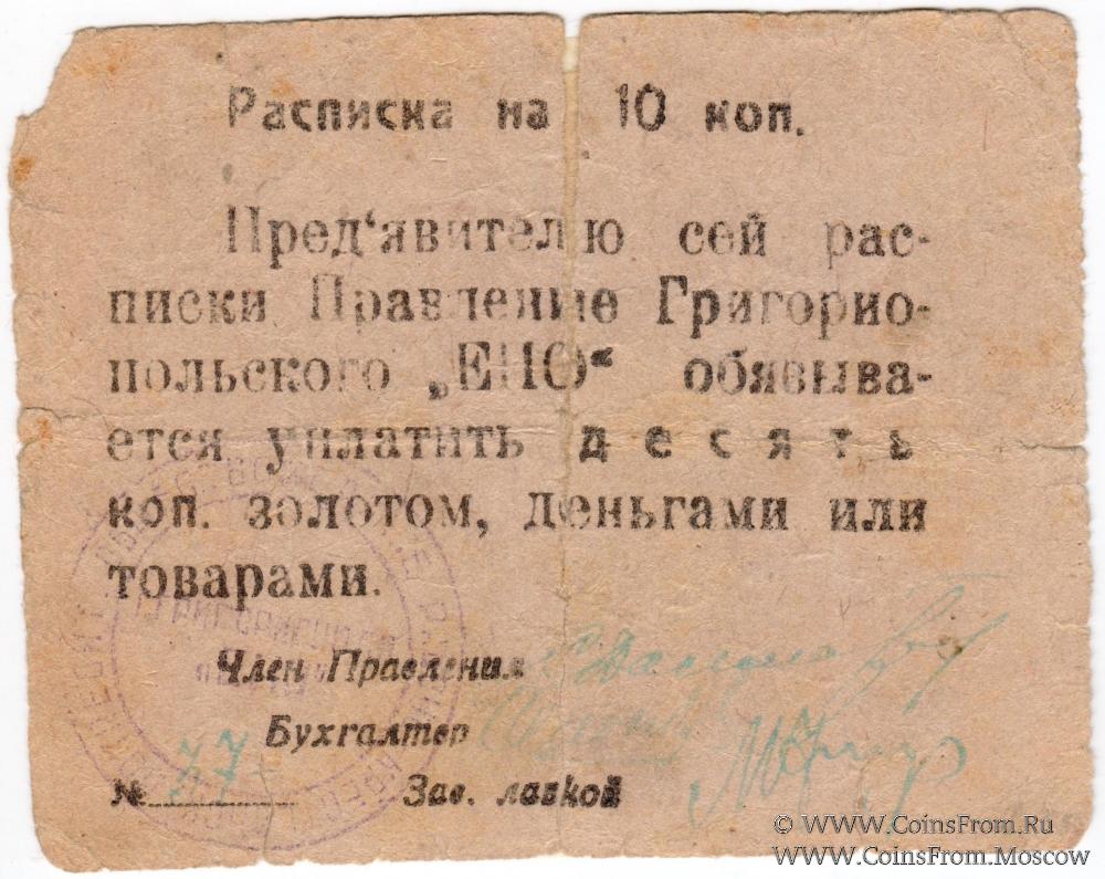 Печать круглая: "Г.ГРИГОРИОПОЛЯ "ЕПО"" (по центру в две строки) / "ЕДИНОЕ РАБОЧЕ-КРЕСТЬЯНСК. ПОТРЕБИТ. ОБЩЕСТВО *" (по кругу).