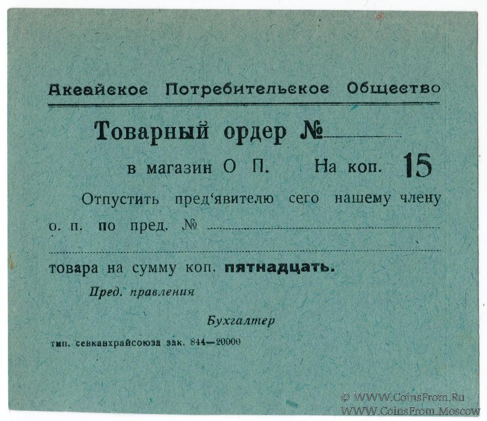 Товарный ордер. Аксайское Потребительское Общество.