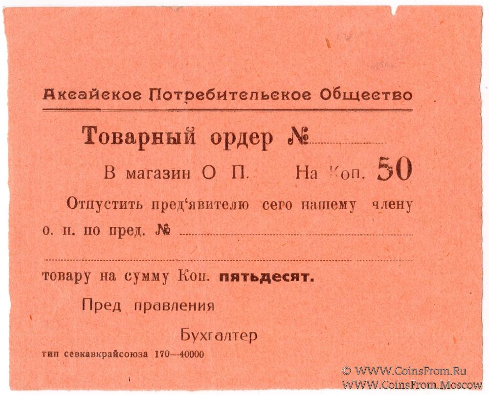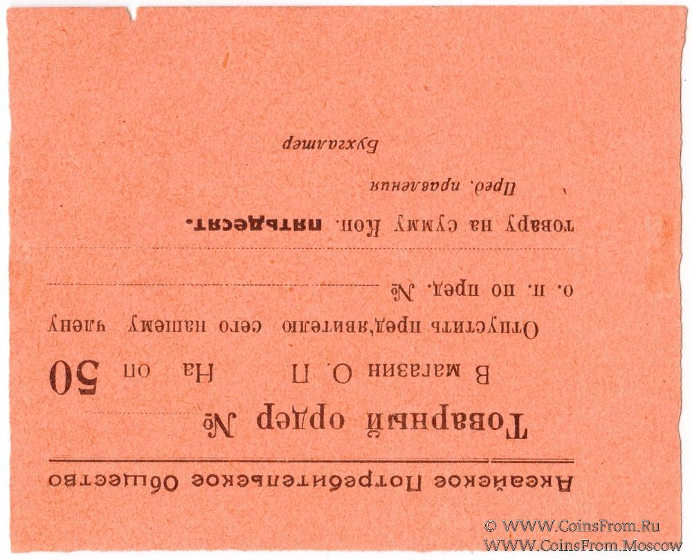 Товарный ордер. БРАК печати: два аверса, соосность 180 градусов. Оранжевый. Вариант 2 текста. Аксайское Потребительское Общество.