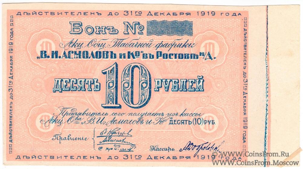 10 рублей 1919 г. (Ростов на Дону) БРАК