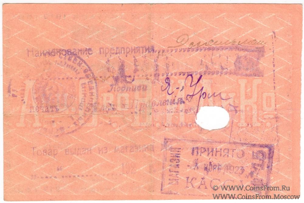 Бон Акционерного Общества Табачной фабрики "В.И. Асмолов и Ко". Гашение. Аверс: надпечатка Единого Потребительского Общества (Е.П.О.).