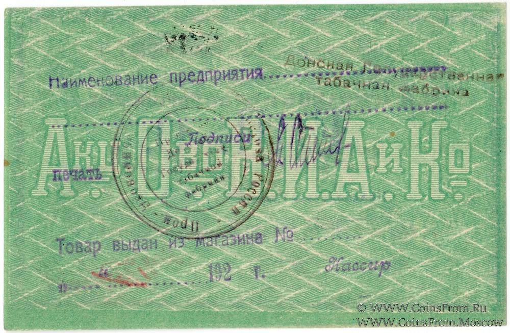 Реверс: надпечатка Донской Государственной табачной фабрики.