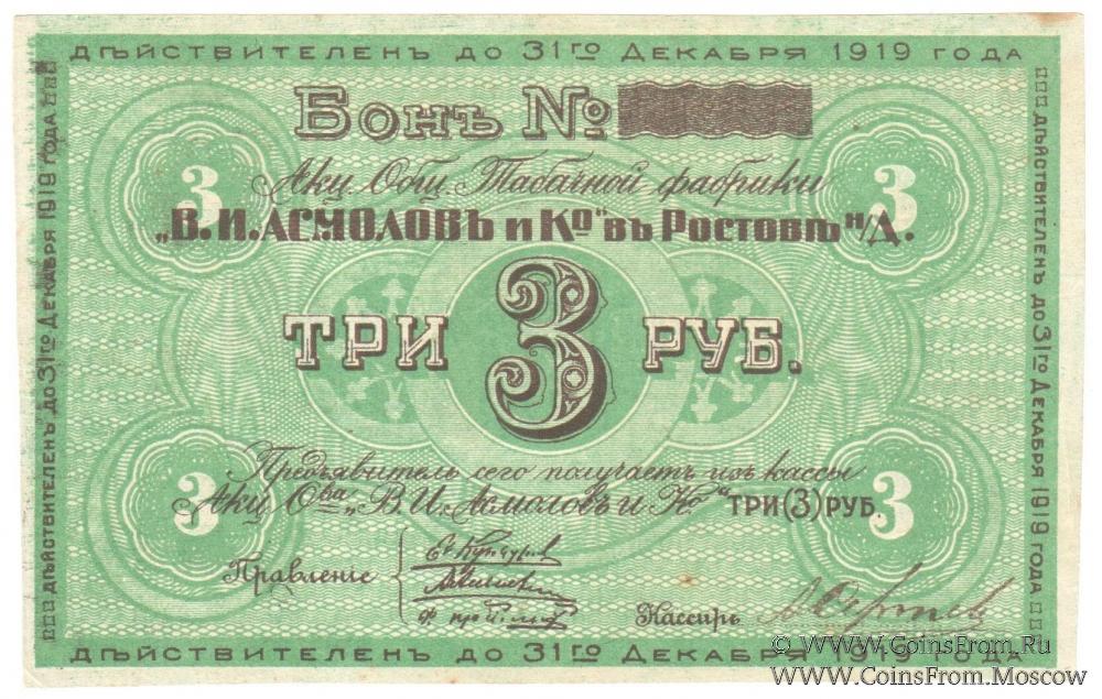 3 рубля 1919 г. (Ростов на Дону) БРАК