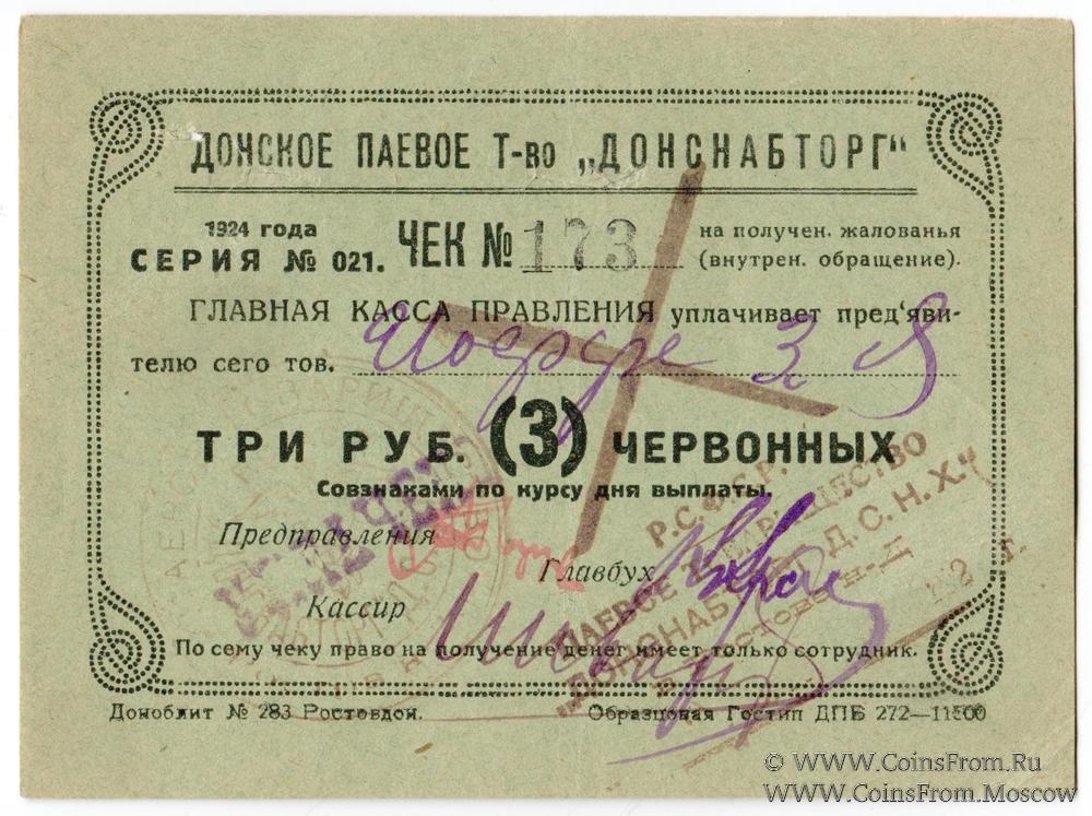 Чек 1924 г. в червонных рублях.