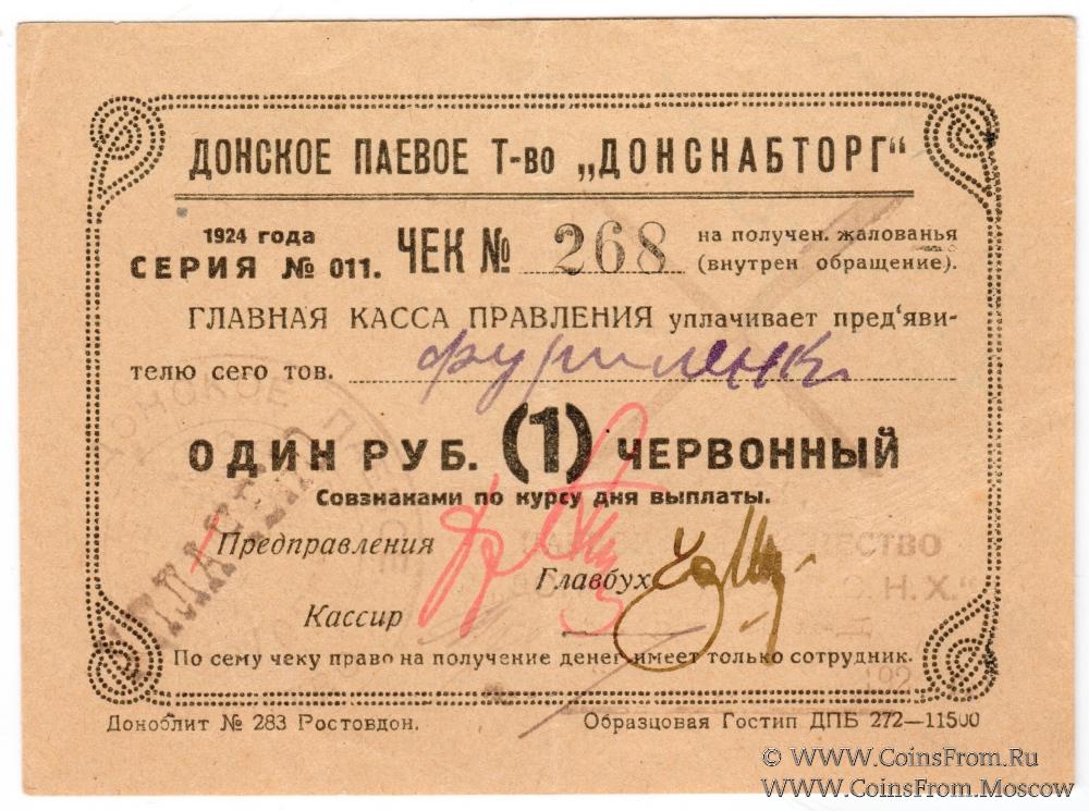 Чек 1924 г. в червонных рублях.