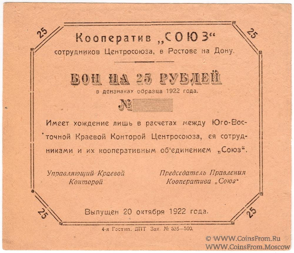 Бон 1922 г. Бланк. Печать на реверсе.