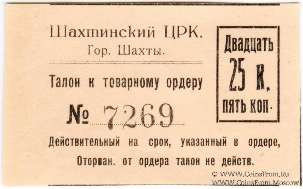 Талон к товарному ордеру без даты (1925 г.). Шахтинский Центральный Рабочий Кооператив.