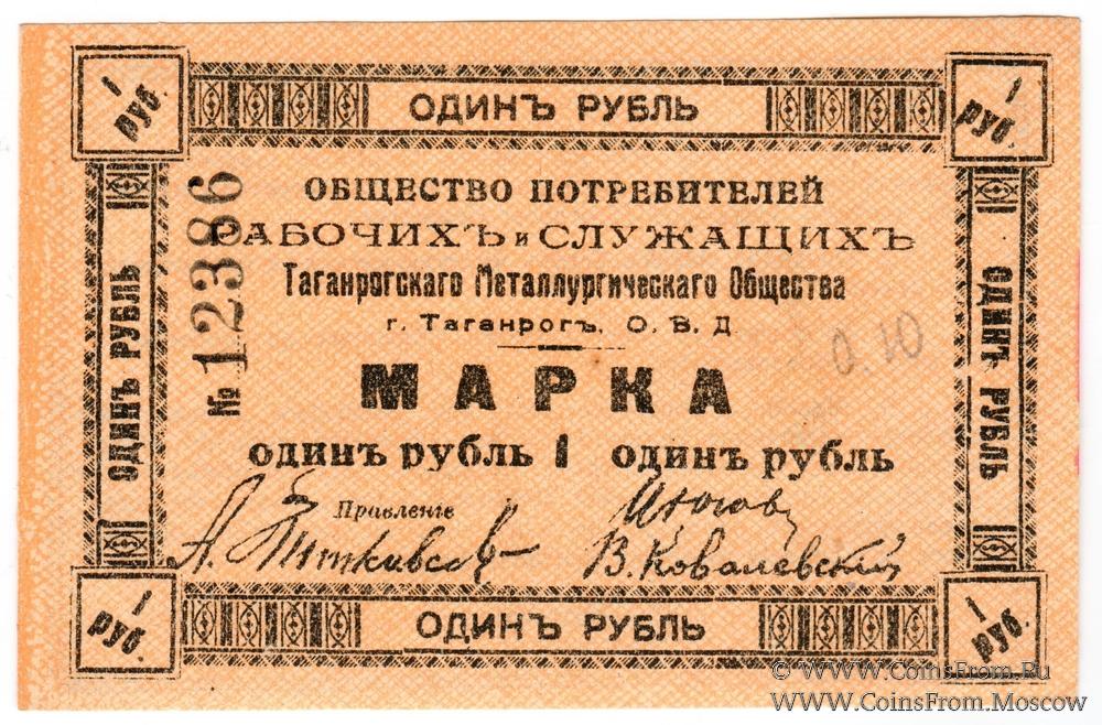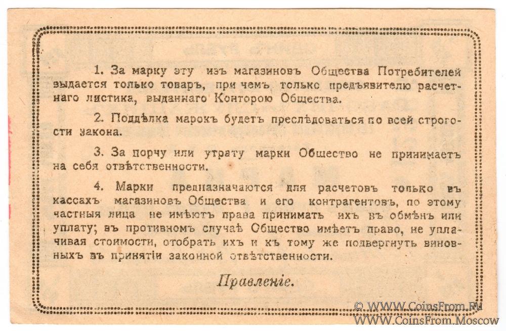 Марка без даты. Бланк с номером. Общество Потребителей рабочих и служащих. Таганрогское Металлургическое общество.