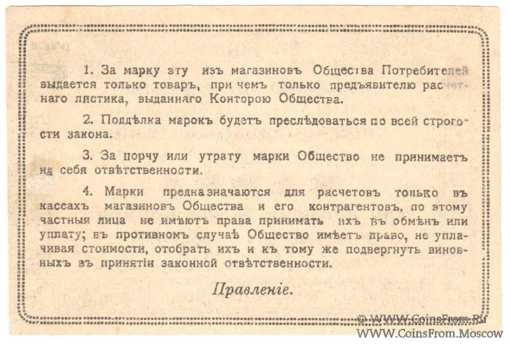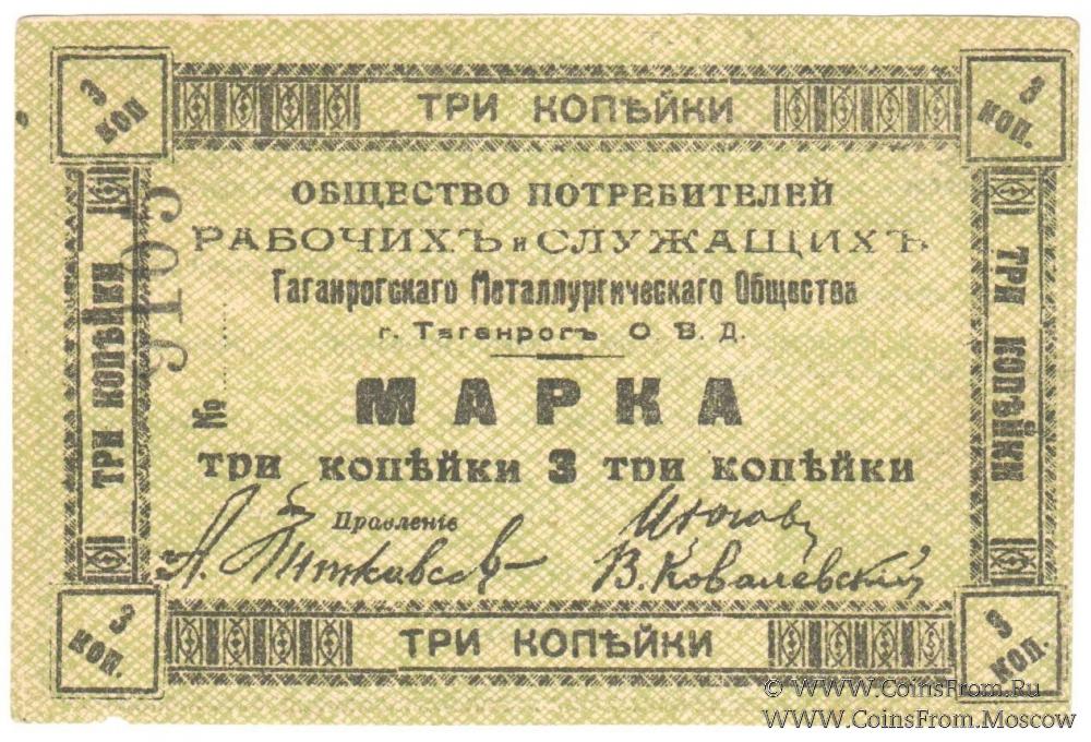Марка без даты. Бланк с номером. Общество Потребителей рабочих и служащих. Таганрогское Металлургическое общество.