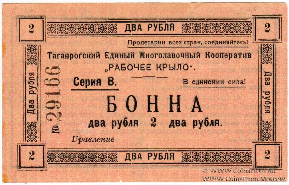 Бонна без даты (1919 г.). Серия В. Бланк. Единый Многолавочный Кооператив "Рабочее крыло".