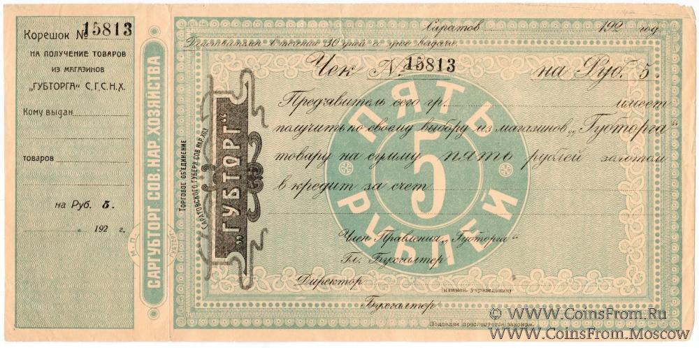 Чек. Бланк с номерным корешком чека. Торговое Объединение Саратовского Губернского Совнархоза "ГУБТОРГ".