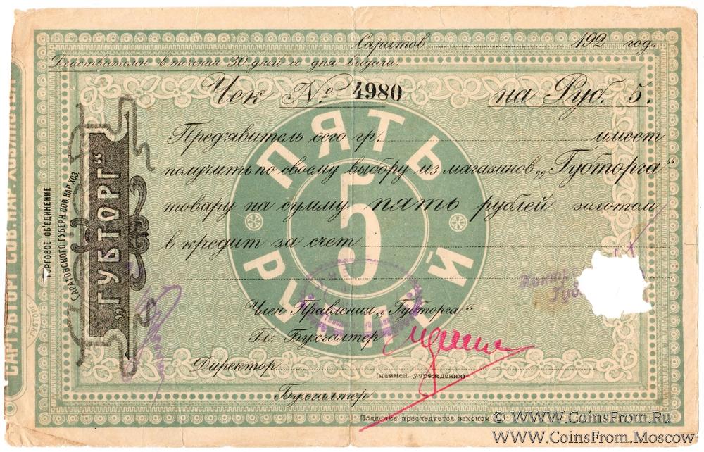 Овальный штамп: "ПЕЧАТЬ НАРЯДОВ " (по центру, в две строки) / " * "ГУБТОРГ" Саратовского Губхоза * " (по кругу).