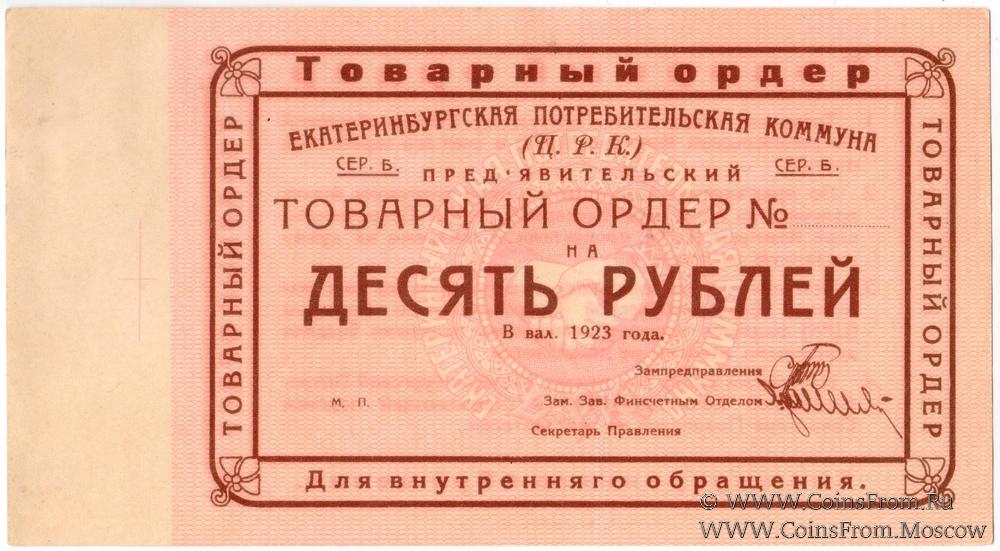 10 рублей 1923 г. (Екатеринбург). Серия Б.