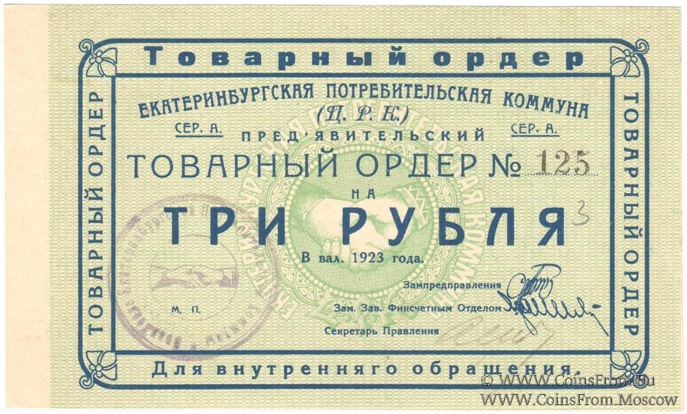 3 рубля 1923 г. (Екатеринбург). Серия А.
