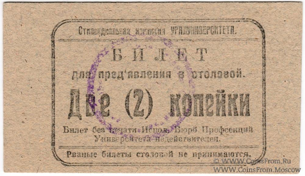 Билет для предъявления в столовой. Тонкий картон серого цвета. Стипендиальная комиссия УРАЛУНИВЕРСИТЕТА.