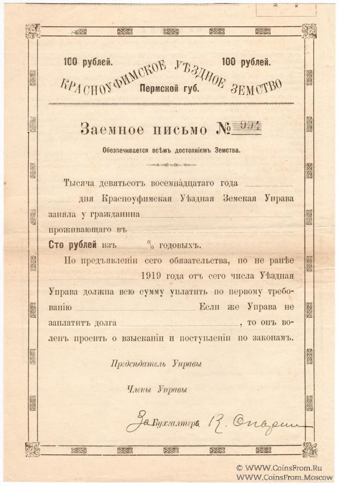 100 рублей 1918 г. (Красноуфимск)