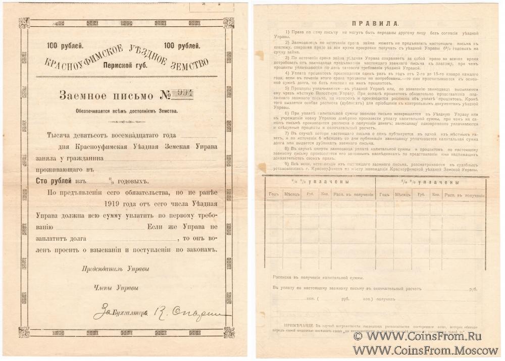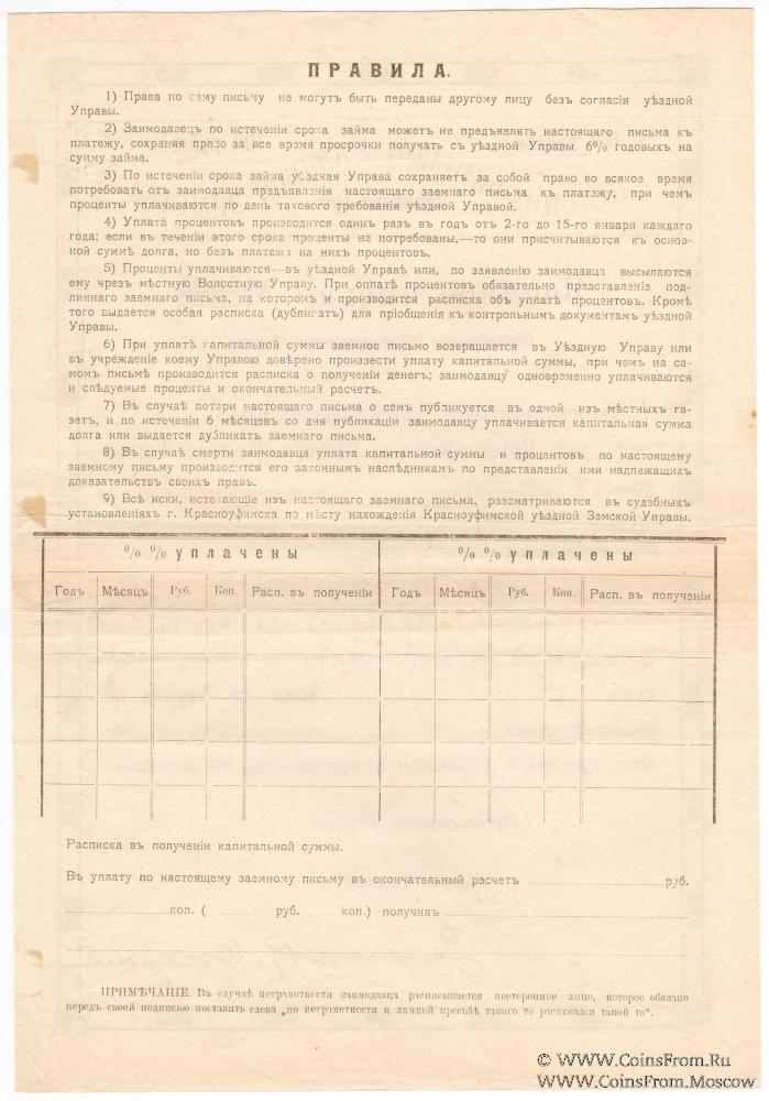 Заемное письмо. Красноуфимское Уездное Земство.