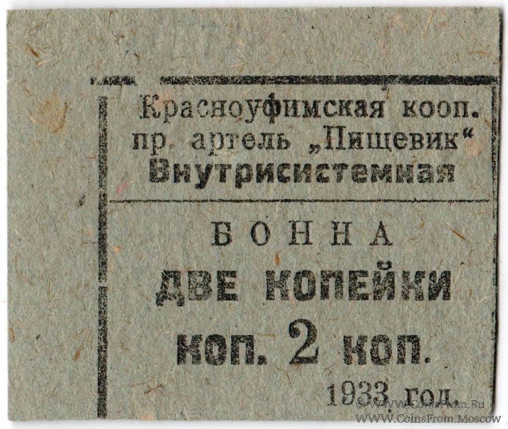 Штамп на реверсе (4 строки): Красноуфимская / Промыслово-Кооперативная / производствен. артель / "ПИЩЕВИК"