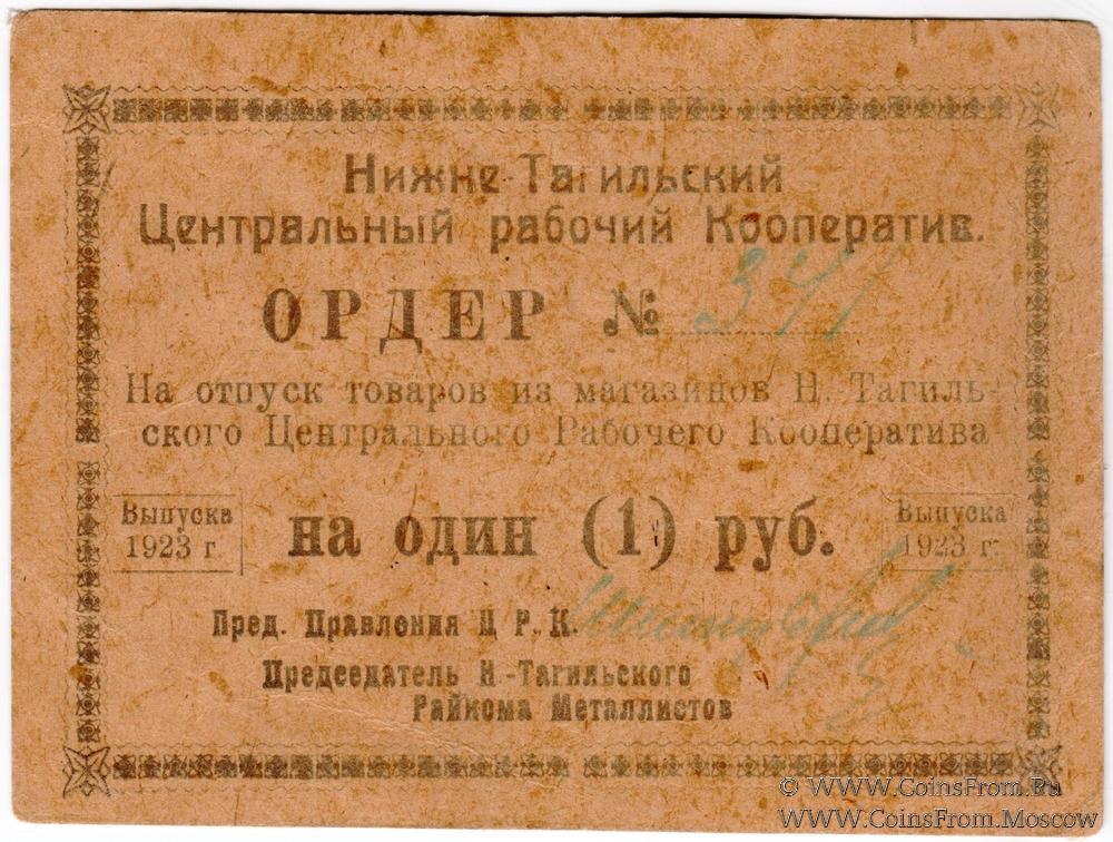 Ордер 1923 г. Номер и подпись зеленого цвета. На плотной бумаге. Две печати на реверсе. Нижне-Тагильский Центральный Рабочий Кооператив.
