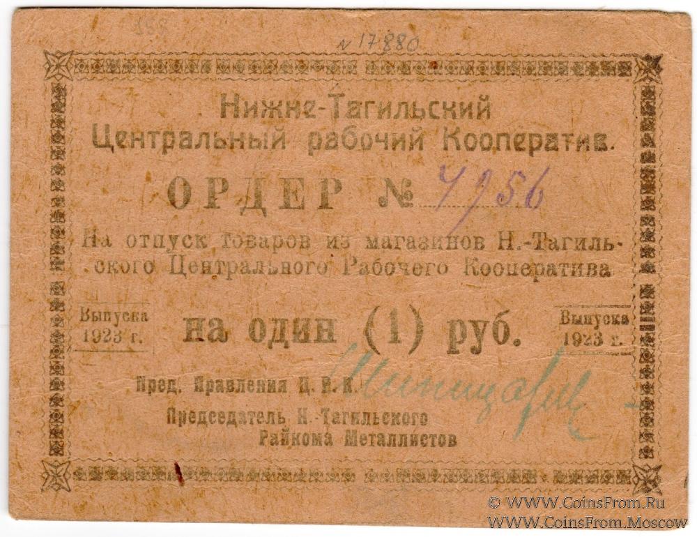 Ордер 1923 г. На плотной бумаге. Две печати на реверсе. Нижне-Тагильский Центральный Рабочий Кооператив.
