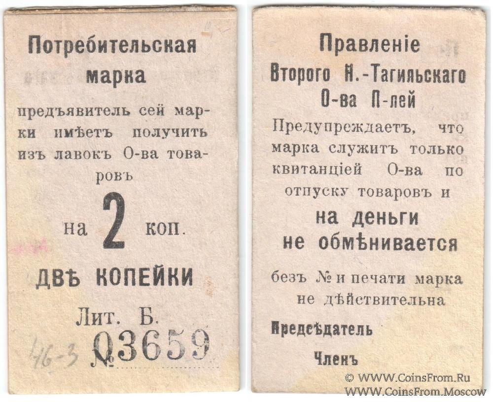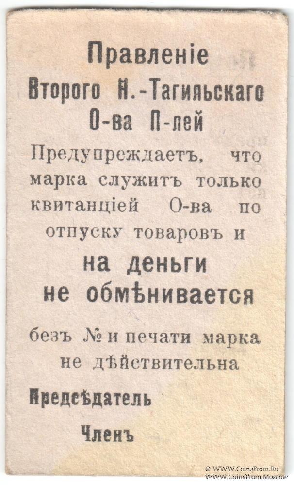 Потребительская марка (на картоне) без даты. Без печати. Правление Второго Нижне-Тагильского Потребительского общества.
