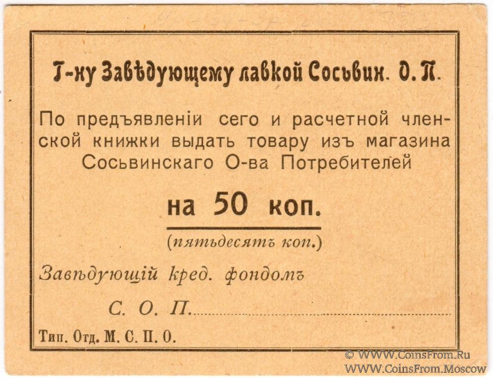 Без названия (По предъявленiи сего). Г-ну Заведующему лавкой Сосьвинского О.П. Сосьвинское Общество потребителей.