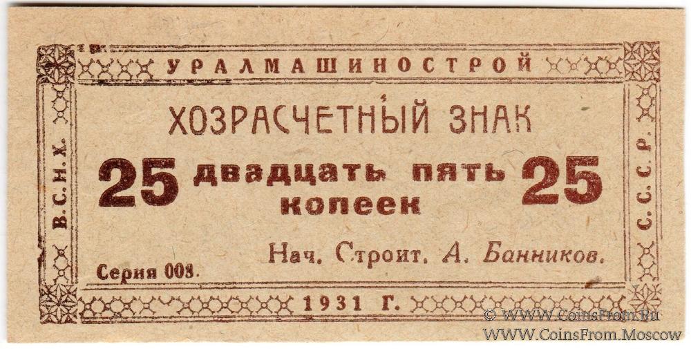25 коп 1931 Свердловск Уралмашинострой АВ
