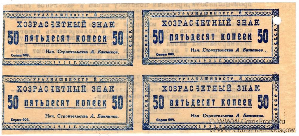 Хозрасчетный знак. Сцепка из 4-х знаков. УРАЛМАШИНСТРОЙ.