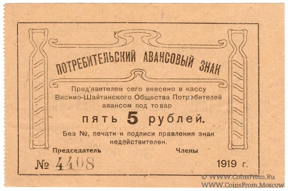 5 рублей 1919 г. (Висимо-Шайтанск)