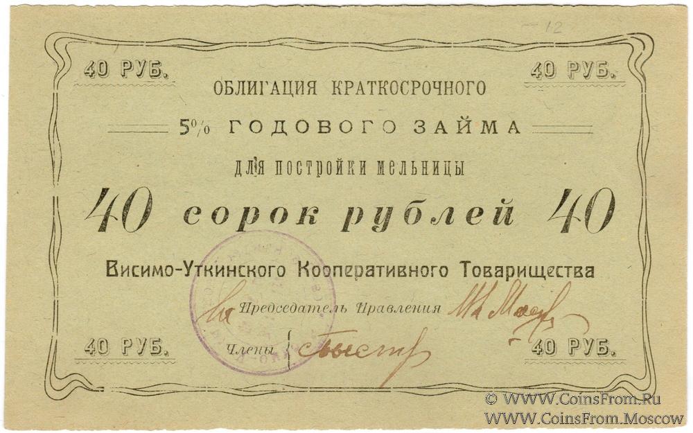 Печать круглая: "Висимо-Уткинское Кредитное Т-во *" (по кругу) / "Пермск. губ. / Верхот.уъз." (по центру, в две строки)