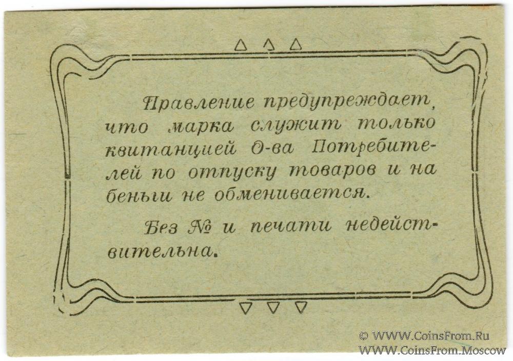 Марка. Литера A. С номером на аверсе. Рамка 1 типа. БРАК: ошибка "беньги". Висимо-Уткинское Общество потребителей.