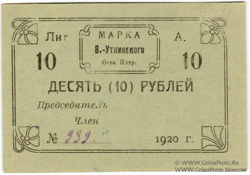 10 рублей 1920 г. (Висимо-Уткинск) БРАК