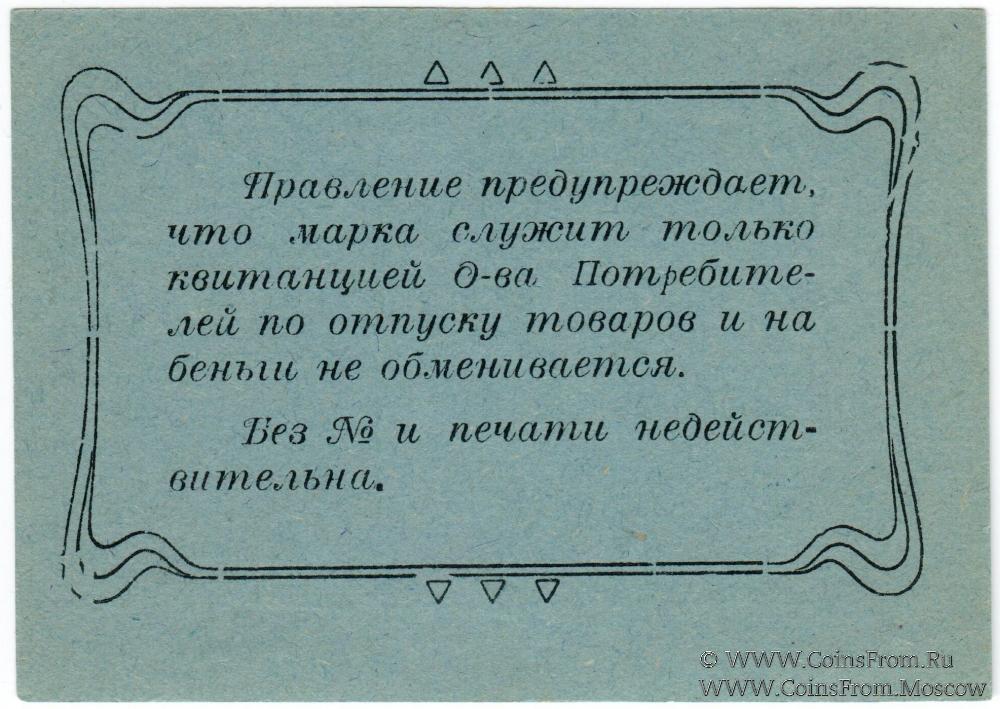 Марка. Литера Б. С номером на аверсе. Рамка 1 типа. БРАК: ошибка - "беньги". Висимо-Уткинское Общество потребителей.