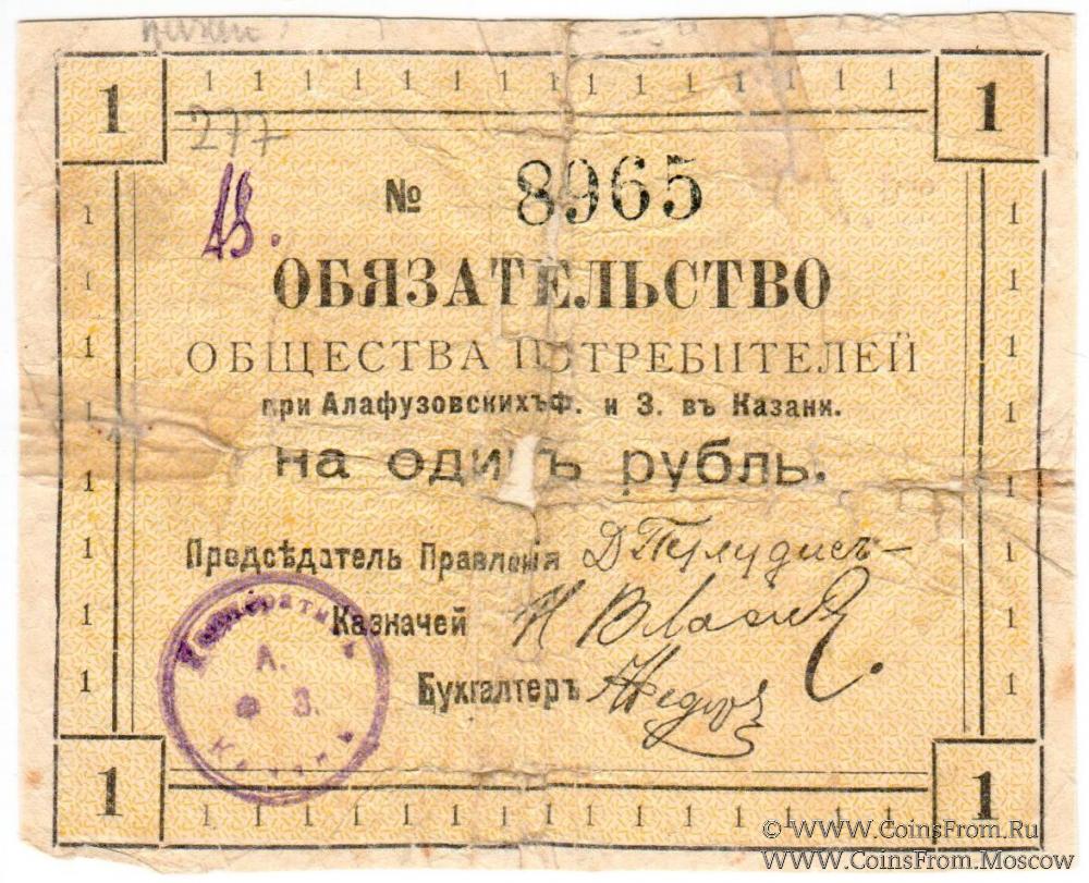 Обязательство. С печатью: «Кооператив А.Ф.З. Казань». Общество Потребителей при Алафузовских фабриках и заводах в Казани.
