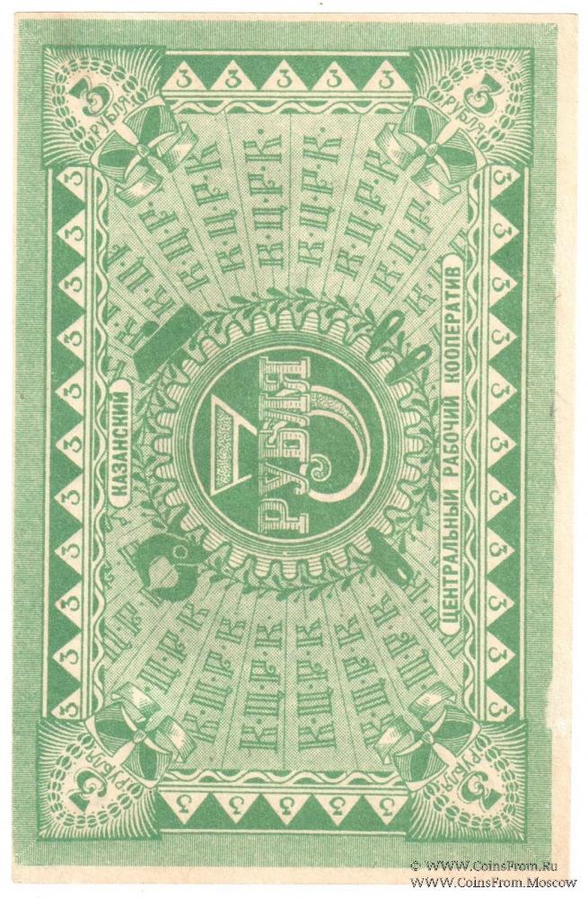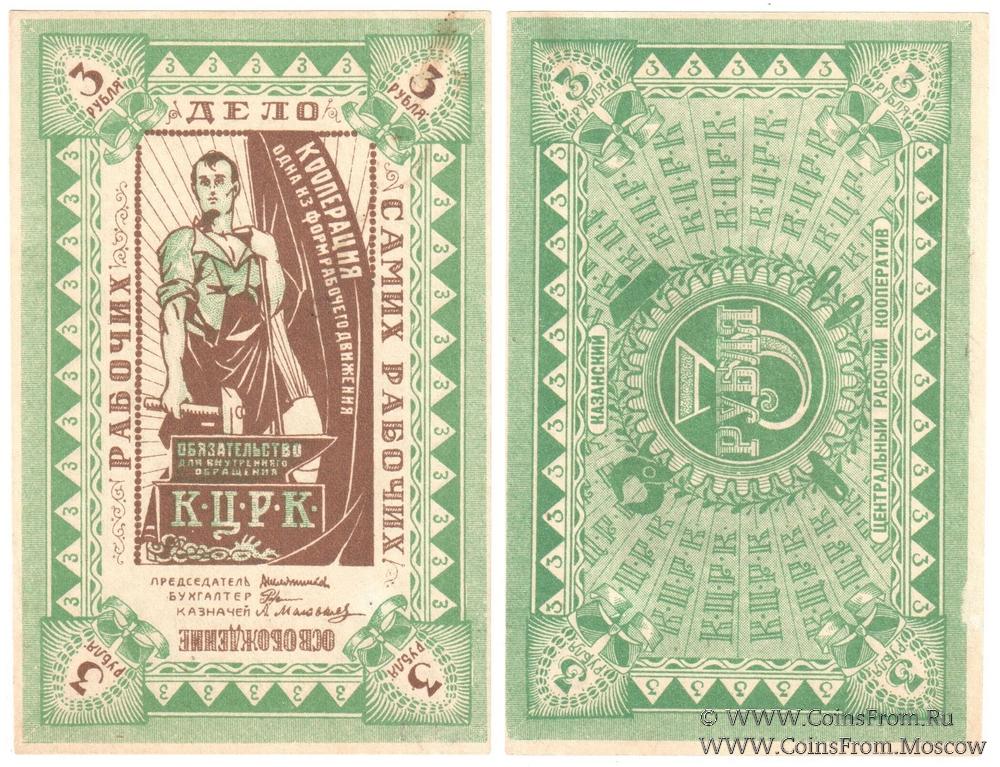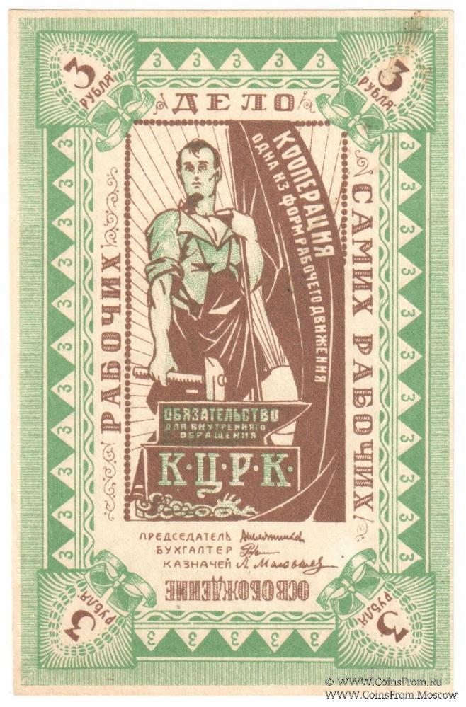 Обязательство для внутреннего обращения 3 рубля без даты. Бланк. Без перфорации. Казанский Центральный рабочий Кооператив К.Ц.Р.К.