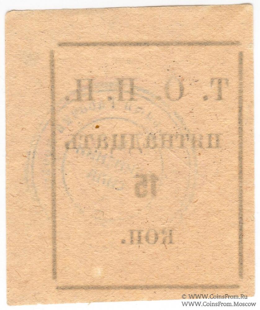 Печать (сиреневая) ЦРК на аверсе 15 коп. Т.О.П.П. Печать (красная) Т.О.П.П. на аверсе. Абкляч аверса на реверсе.