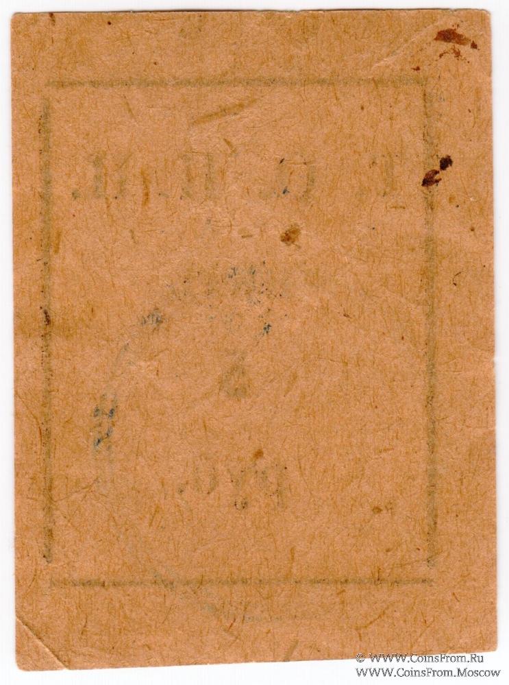 Печать (синяя) ЦРК на аверсе 5 руб. Т.О.П.П. Печать (красная) Т.О.П.П. на аверсе. Бумага коричневая.Тюменский Центральный Рабочий Кооператив.