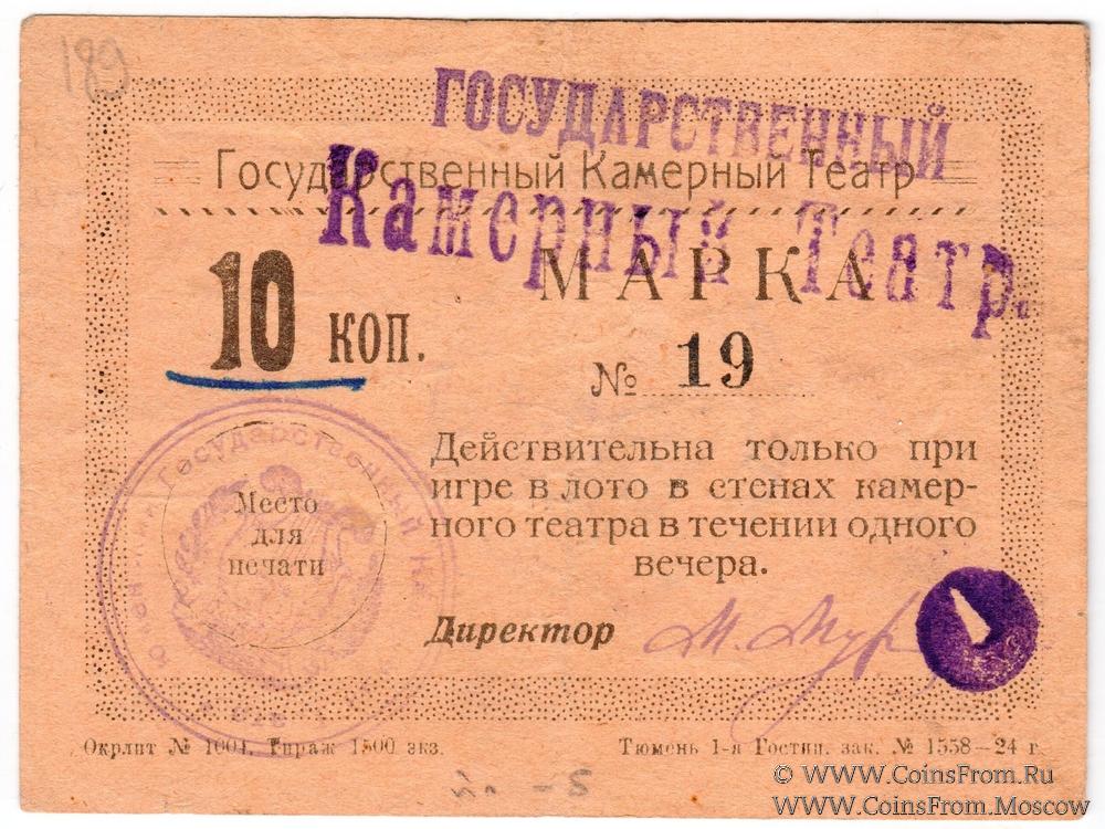 Марка без даты (1924 г.). На оранжевой бумаге. Вариант подписи. Тюменский Государственный Камерный Театр.