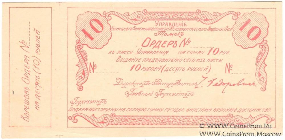 10 рублей 1918 г. (Томск)
