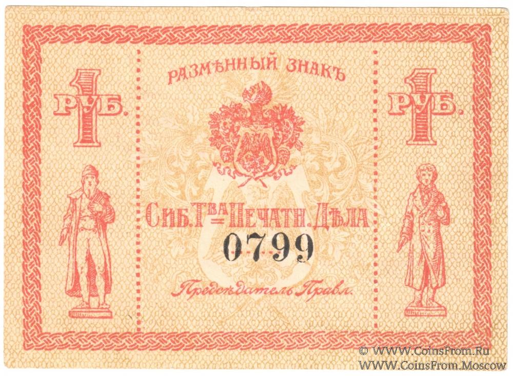Разменный знак без даты. Сибирское товарищество "Печатное Дело" (1907-1919 гг.).
