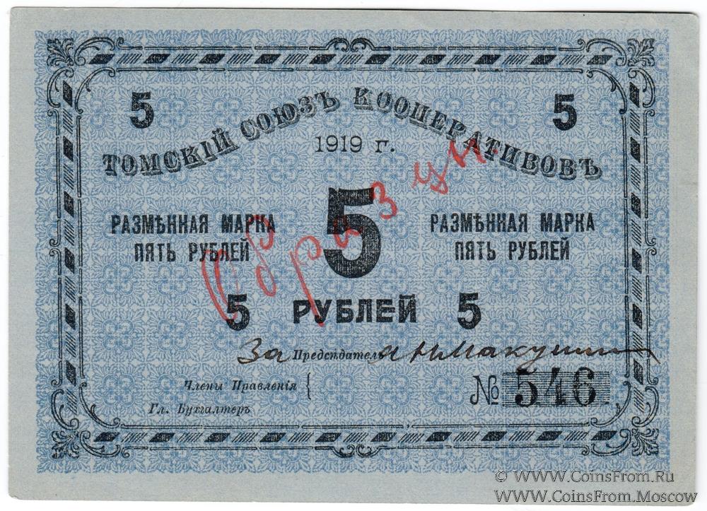 5 рублей 1919 г. (Томск) ОБРАЗЕЦ