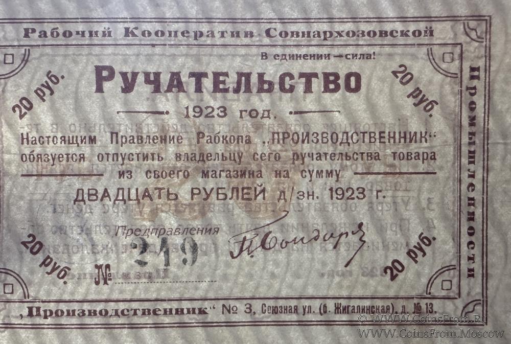 Ручательство. Номер 3-значный. Единый Рабочий Кооператив Совнархозовской Промышленности "ПРОИЗВОДСТВЕННИК" № 3.
