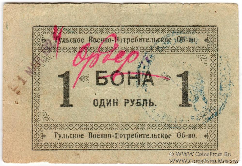 Главная > Магазин > Моя коллекция > Банкноты России периода Первой Мировой Войны, Гражданской войны, революции и первых лет Советской власти > Частные боны Гражданской войны > Тульская область > Тула. Тульская губерния. > ВПО > 1 рубль 1924 г. (Тула)