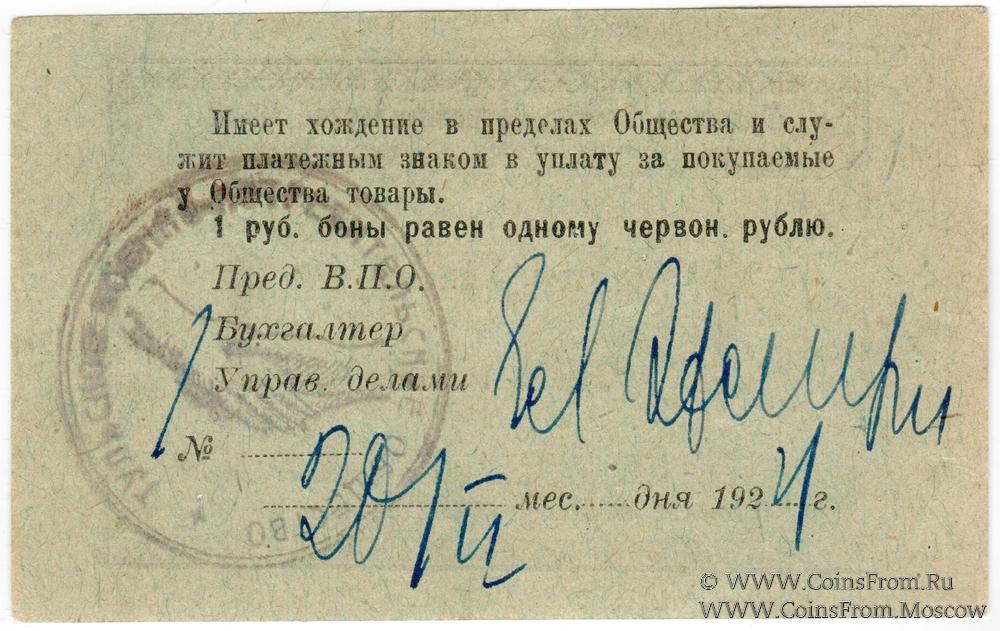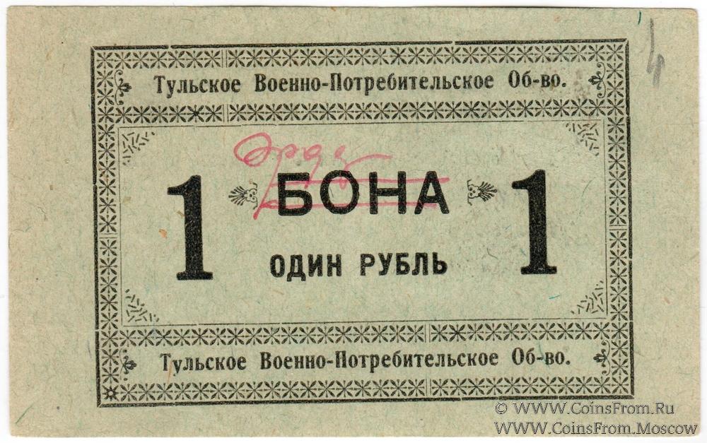 Бона (зачеркнута) с надписью от руки "Ордер". На реверсе: печать и подпись. Тульское Военно-Потребительское Общество.