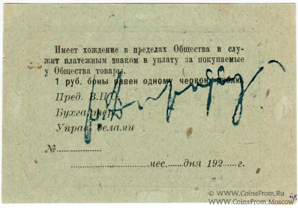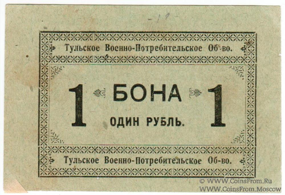 Бона. Бланк (подпись - факсимиле председателя ВПО). Тульское Военно-Потребительское Общество.