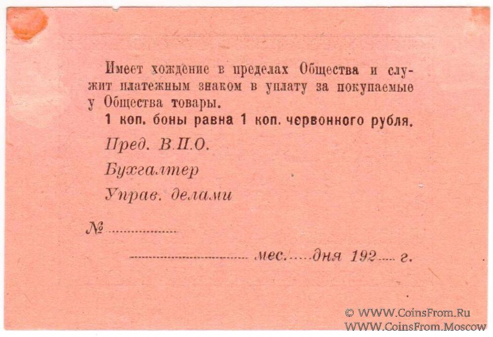 Бона. Бланк. Тульское Военно-Потребительское Общество.