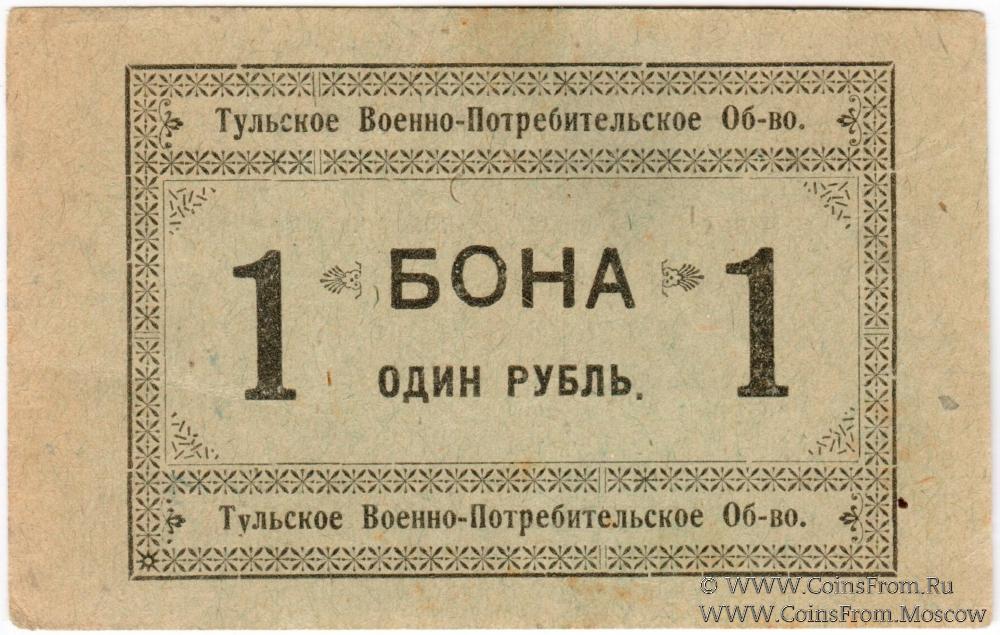 Бона. На реверсе: печать и подпись. Рамка со звездой. Тульское Военно-Потребительское Общество.