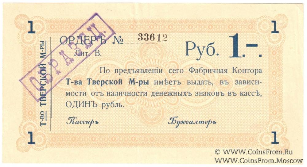 Ордер без даты (1918 г.). Литера В. Штамп "ОБРАЗЕЦ". Фабричная контора Товарищества Тверской Мануфактуры.