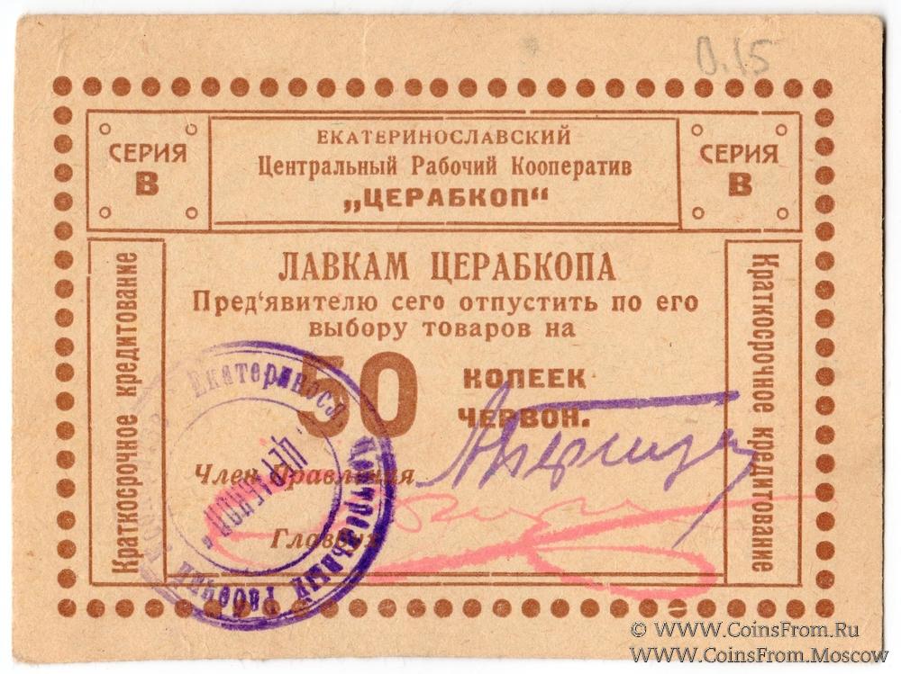В червонных копейках. Серия В. Екатеринославский Центральный Рабочий Кооператив "ЦЕРАБКОП".